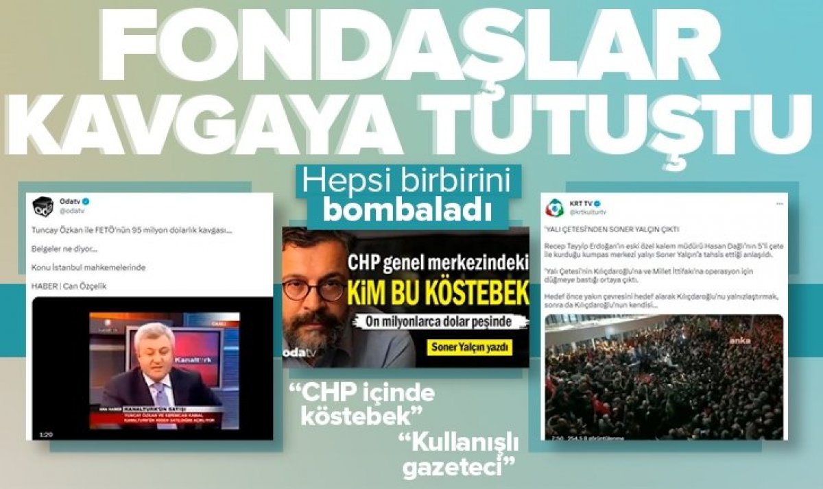 14 Mayıs'ta yapılacak seçimler öncesi CHP'nin içinde kazan kaynarken, fondaş medyada da kavga başladı. CHP Genel Başkan Yardımcısı Tuncay Özkan ile Ekrem İmamoğlu'na yakınlığı ile bilinen ODA TV'nin sahibi Sözcü yazarı Soner Yalçın arasında kılıçlar çekildi.