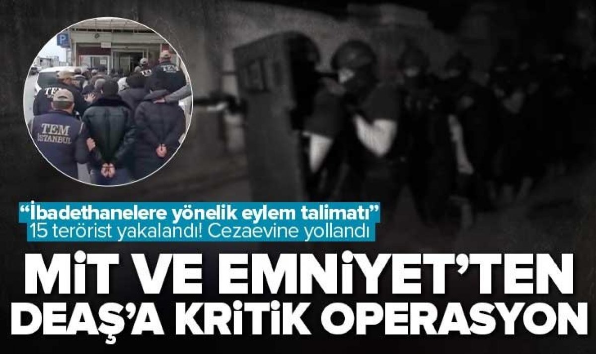 İstanbul Emniyeti İstihbarat Şube Müdürlüğü'nün tespitlerinin ardından terör örgütü DEAŞ ile bağlantılı oldukları belirlenen 15 kişi yakalandı ve cezaevine gönderildi..