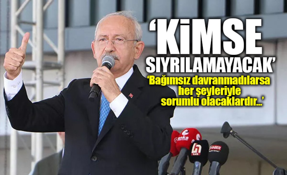 CHP lideri Kemal Kılıçdaroğlu, “'Erdoğan’ın emriydi; yaptım, oldu’ diyerek kimse sıyrılamayacak. Hele hele bağımsız olması gereken kurumun yöneticileri, bağımsız davranmadılarsa her şeyleriyle sorumlu olacaklardır. Milletin ekmeğiyle oynayanın ekmeği olmaz. Olmayacak" dedi.
